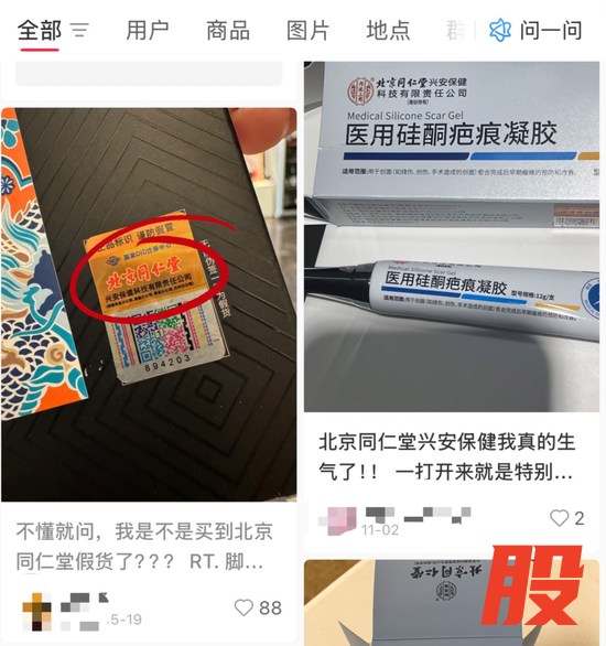 红星资本局注意到,社交平台上,网友们有着类似的疑惑,“我是不是买到北京同仁堂假货了?”“北京同仁堂被贴牌了吗?”涉及产品从玫瑰花茶、秋梨枇杷膏、蒲公英菊花决明子茶等食品,到硅酮凝胶、热敷贴、三伏贴、足浴包等医疗器械及日用品,多款产品为北京同仁堂兴安保健、北京同仁堂(四川)药业出品。